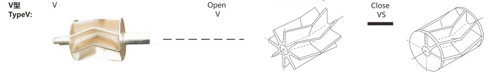 The blade is of a double-helical type .When hard granules are used in paticular, thistype substantially reducesbetween the rotor and casing ,which is effective for prevention